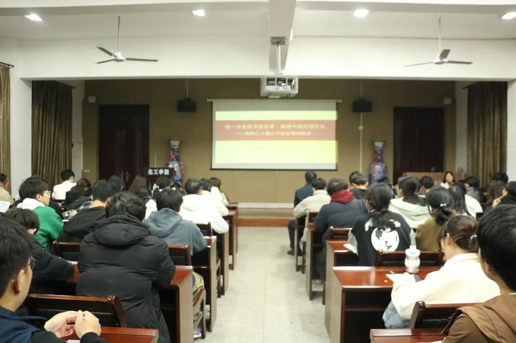 党的二十届三中全会是在以中国式现代化全面推进强国建设、民族复兴伟业的关键时期召开的一次十分重要的会议,全会通过了《中共中央关于进一步全面深化改革、推进中国式现代化的决定》。为引导公司广老员工深入学习贯彻党的二十届三中全会精神,12月2日晚,bwin必赢在向学楼201举办第七期“赤心报国·绿色化工”思政讲堂,邀请马克思主义学院李雪教授为同学们宣讲党的二十届三中全会精神,bwin必赢员工党员、团委员工会及各班级员工干部参加,本次活动由公司党委书记花金龙主持。