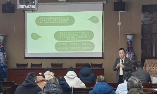 报告会上,谢伏华以“弘扬教育家精神,做新时代大先生”为题,从教育家精神的理论逻辑、教育家精神的时代创新、教育家精神的弘扬路径三个方面进行阐述。他强调,教师是立教之本、兴教之源,强国必先强教,强教必先强师。每位老师应将“四有好老师”、“四个引路人”、“四个相统一”等理念内化于心、外化于行,努力成为“大先生”。大力弘扬教育家精神,坚定心有大我、至诚报国的理想信念,陶冶言为士则、行为世范的道德情操,涵养启智润心、因材施教的育人智慧,秉持勤学笃行、求是创新的躬耕态度,勤修乐教爱生、甘于奉献的仁爱之心,树立胸怀天下、以文化人的弘道追求,践行教师群体共同价值追求。