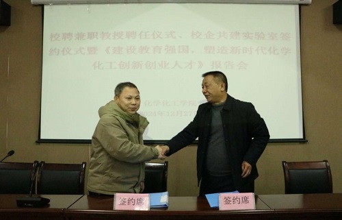 吕仕铭先生从世名科技的发展历程、产品服务、产学研合作等方面介绍了公司的情况。他指出,本次回到九江创立江西固夏能源科技有限公司,旨在实现废旧电池资源循环利用,助力国家循环经济建设。目前公司已具备了一定的技术基础,此次校企深度合作,必将促进公司在绿色储能、资环循环利用、数智化建设等方面实现突破。公司高度重视校企联合实验室建设和校企科研合作,校企团结协作,一定会结出累累硕果。